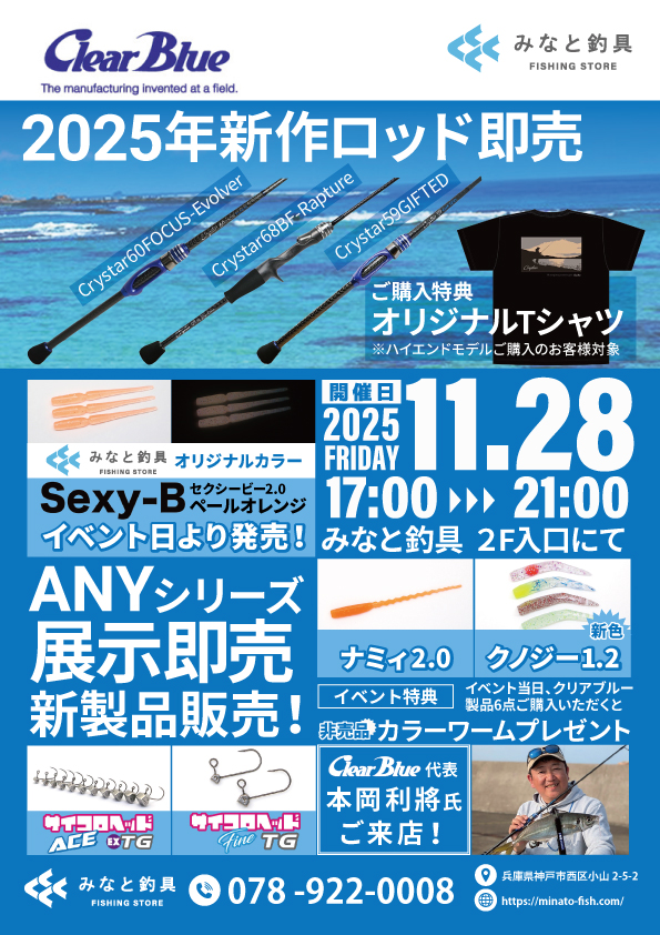 【11月28日4時間限定】代表・本岡氏来店!Clear Blueの2025年最新ロッド&みなと釣具オリカラを手に入れろ!