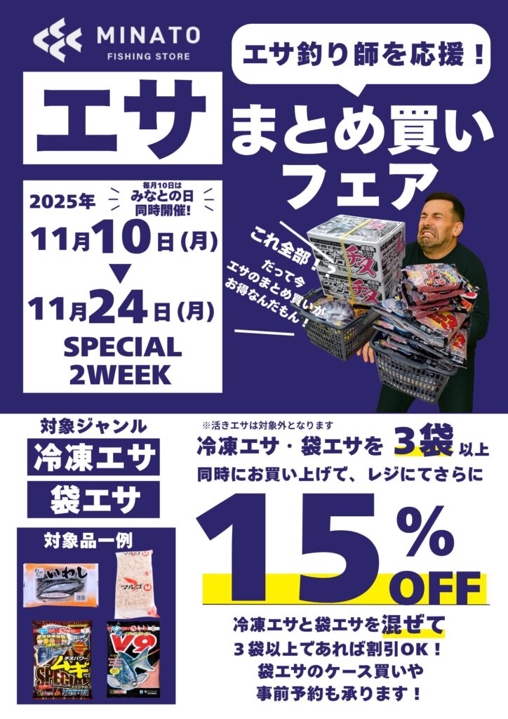 【11/10~11/24】エサ釣り師応援!『エサまとめ買いフェア』開催!冷凍・袋エサが15%OFF!