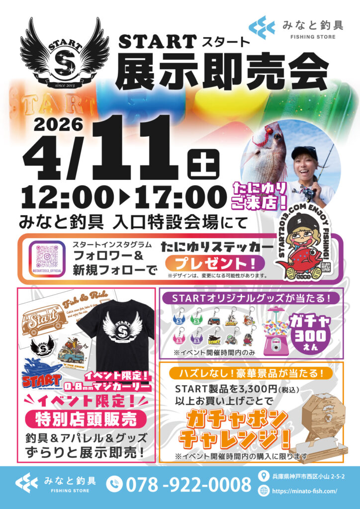 タイラバを中心に圧倒的な支持を得ているブランド「START(スタート)」のスペシャルイベント! さらに、アングラーの「たにゆり」さんも来店し、会場を盛り上げてくれます!