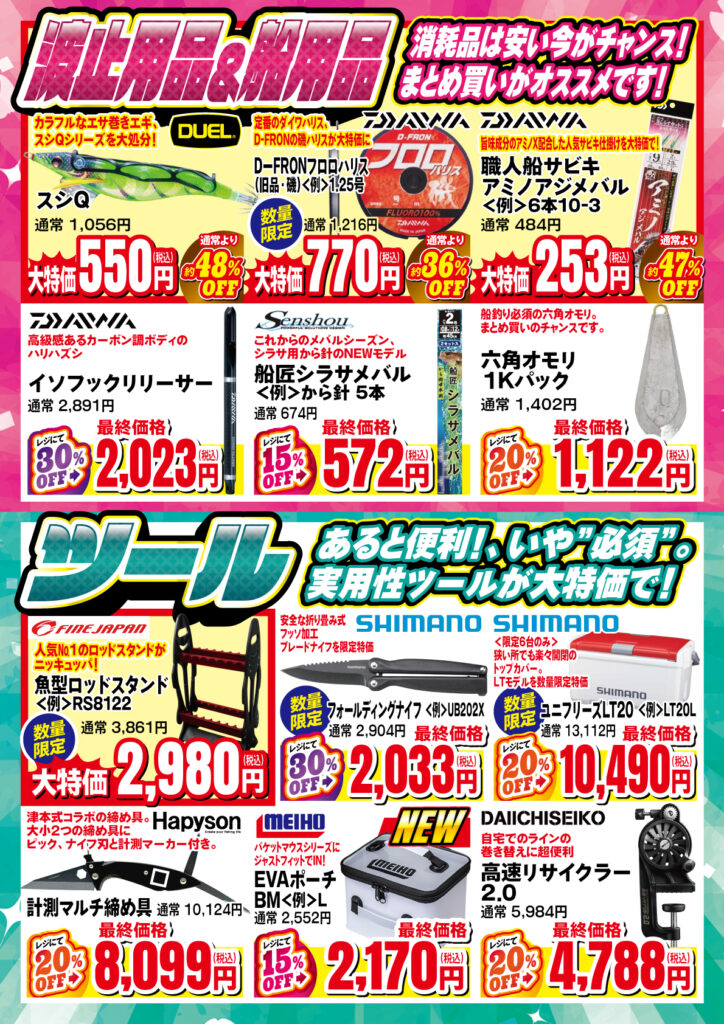 対象ジャンル:ライン、エギ、ルアー、ワーム、エサ (一部対象外品あり)